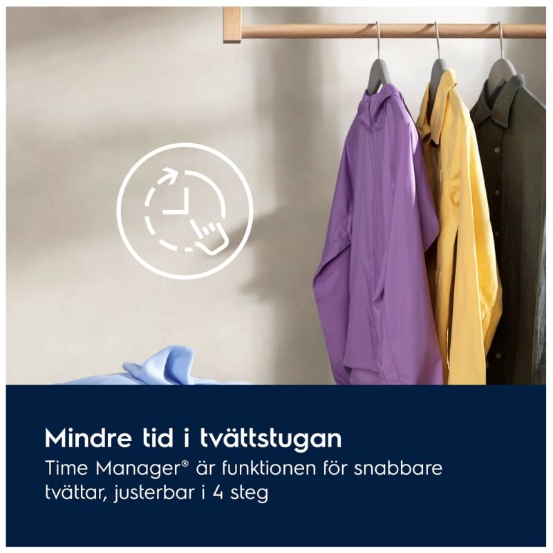 Tvätta inte längre än du behöver. Tvätta dina kläder med Time Manager®-funktionen, justerbar i 4 steg, och få en kortare tvättid.