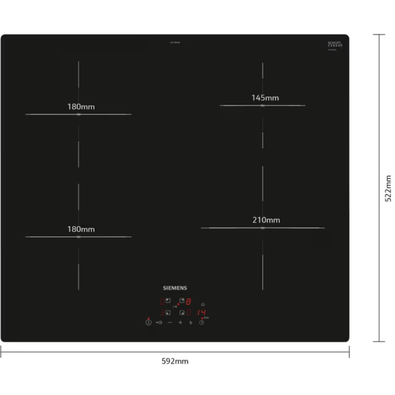 • Kokzon bakre högra: 145 mm , 1.4 kW (max. effekt 2.2 kW)