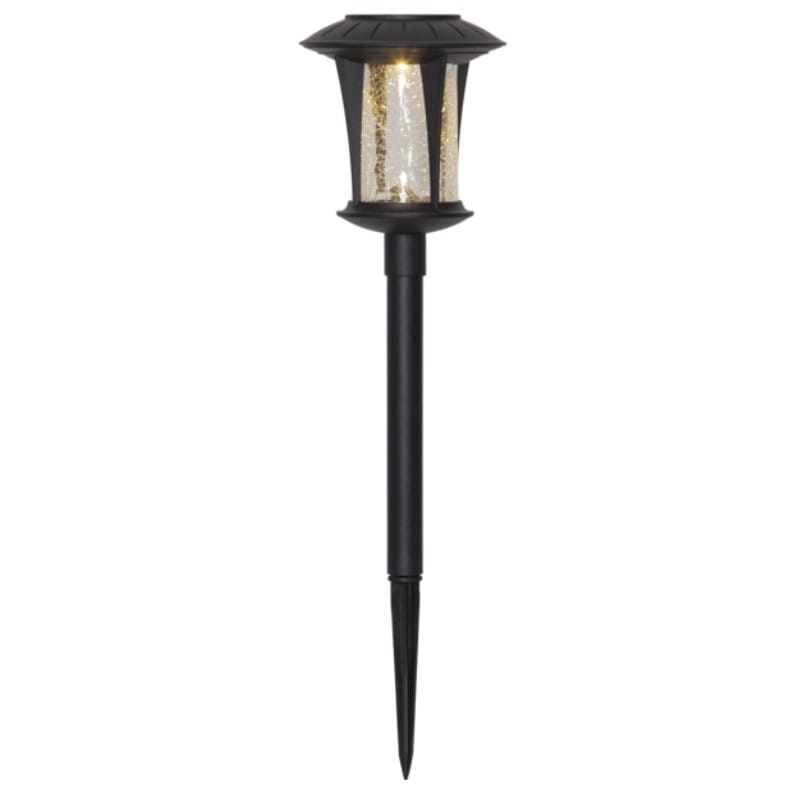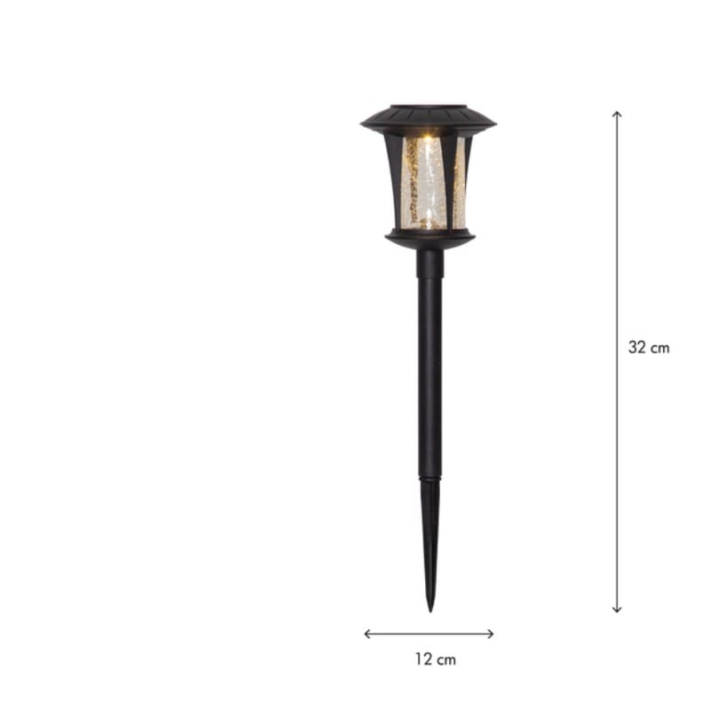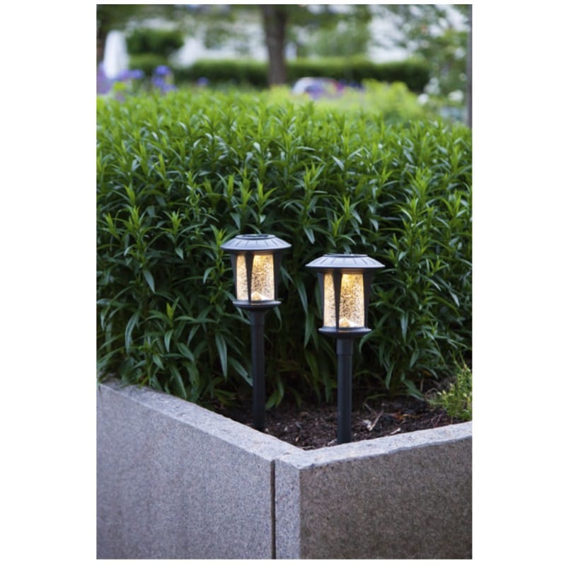 2-pack solcell gångljus som lyser upp med varmvitt sken genom det krackelerade glaset. Solcellspollarna är en fin dekoration till trädgården eller balkongen.