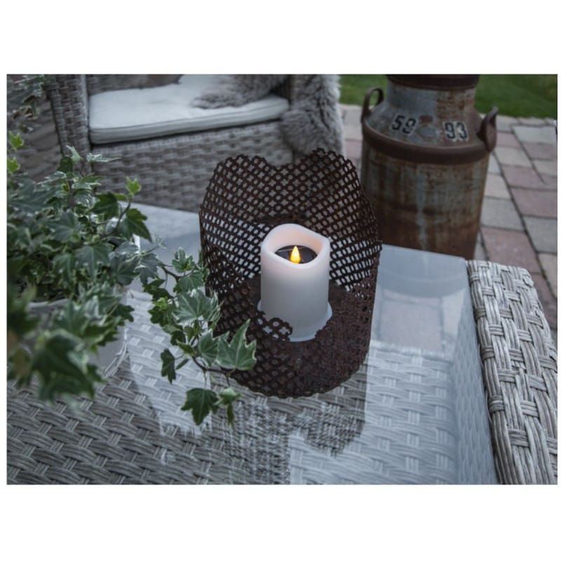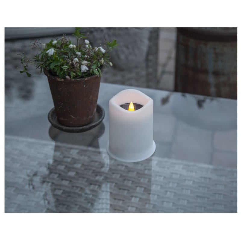 Solcellsljuset Saul är ett vitt plastljus som passar bra att lysa upp i en lykta eller flera ihop som dekoration på till exempel en uteplats eller en balkong, de går också utmärkt att placera på en minnesplats där de lyser upp när mörkret faller. Ljuset lyser med ett varmvitt sken. Placera den så att solen når panelen under dagen för att uppnå den bästa laddningen till det medföljande batteriet.